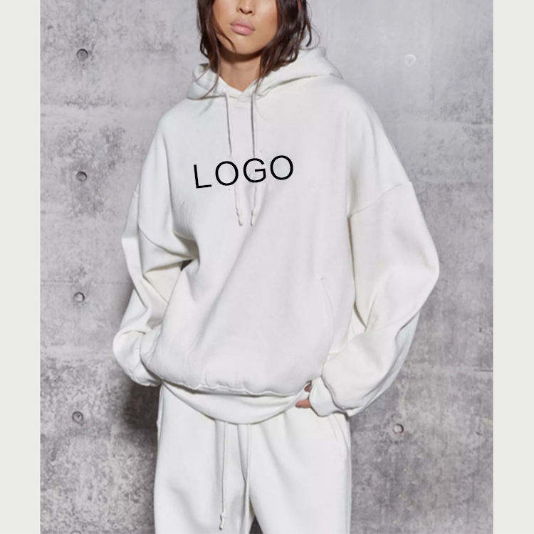 Winter White Cotton Sweatpants and Hoodie Jogger Women Set Custom Plain Women Sweatsuit Crewneck Tracksuit Sweatshirt Set