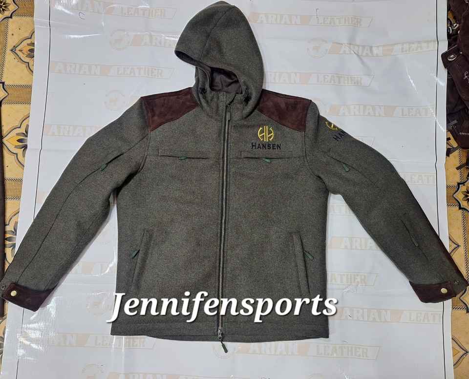 Winter Wholesale Custom Men Long Hunting Quilted Jacket Hood Shell Fabric Wool/Cotton Zipper Closing Front Pockets Polyester
