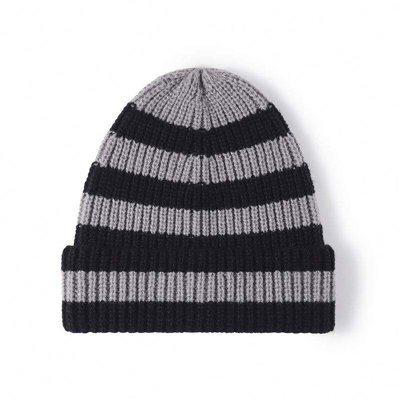 Winter Wild Warm Thickened Big Head Circumference Women's Beanie Fashion Striped Color Matching Woolen Cap Brimless Knitted Hat