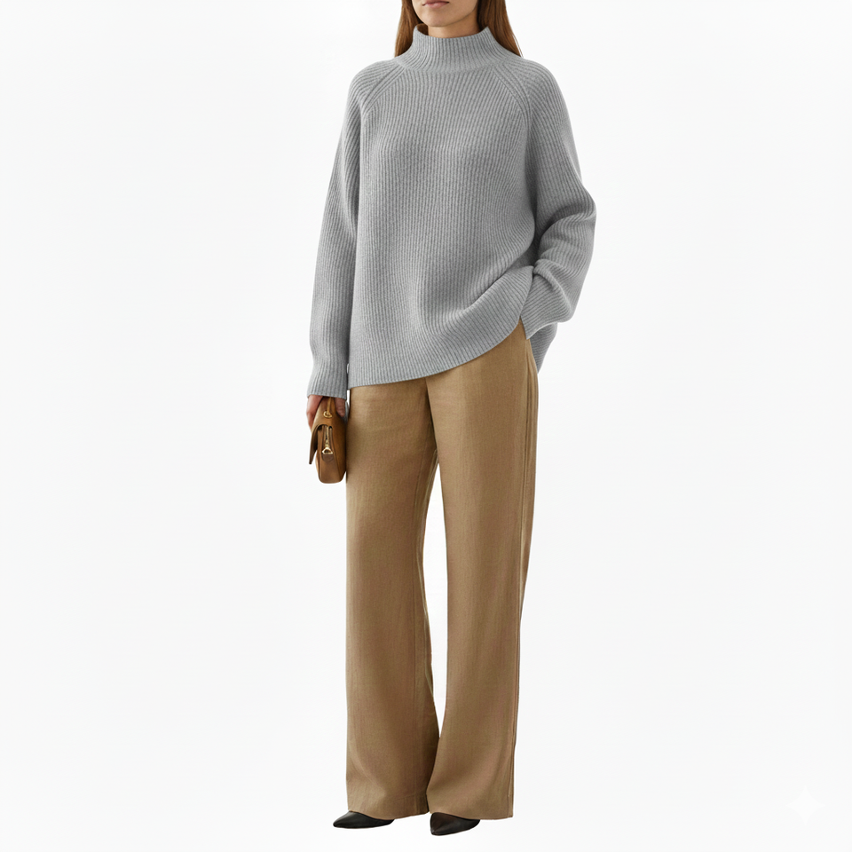 Winter Women Long Oversized Mockneck Fleece Eco-Friendly Sweatshirt Casual Loose Pullover Streetwear Fashion Top Everyday Front