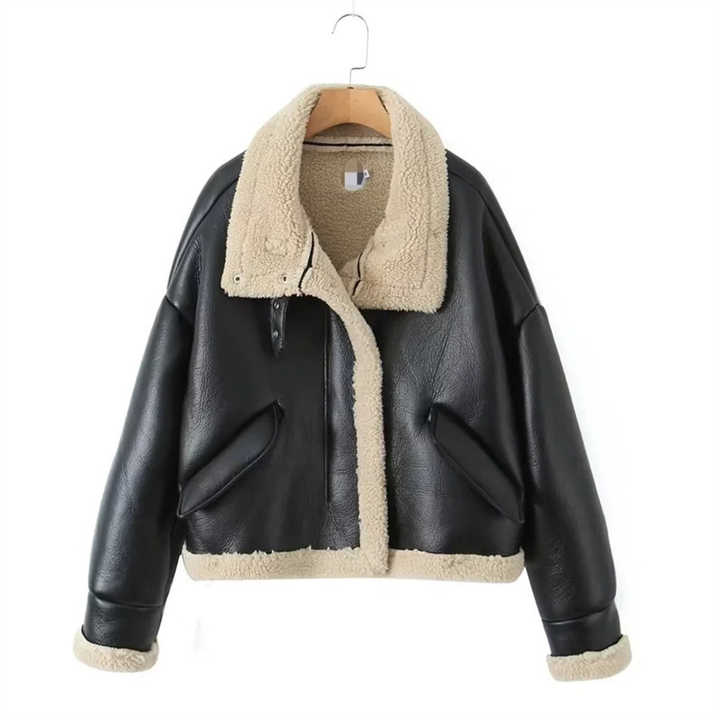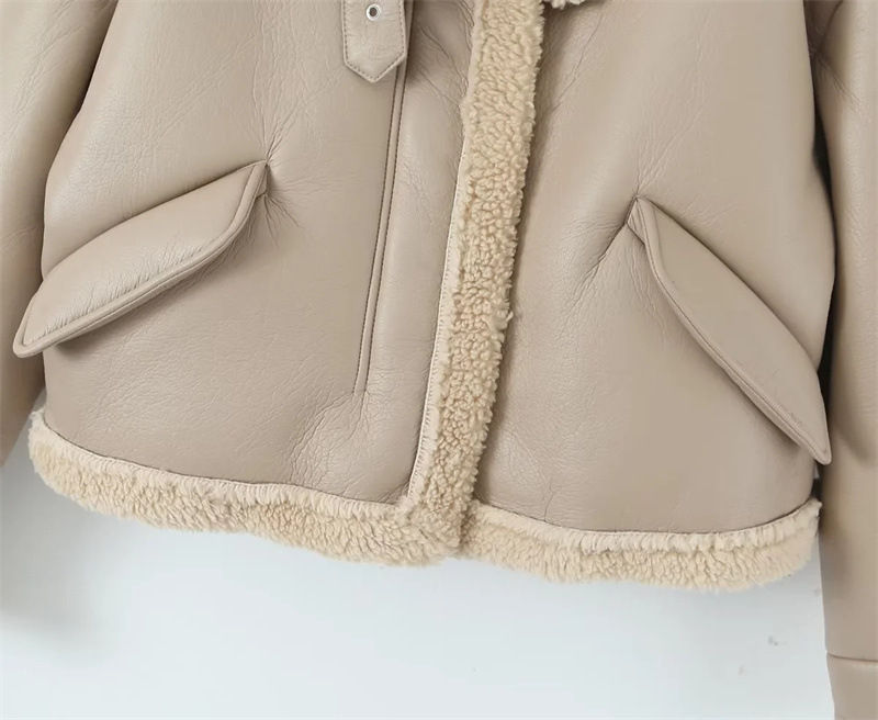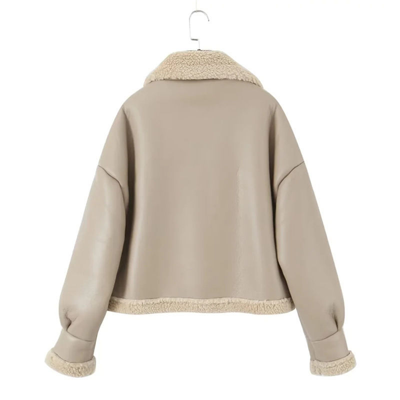Winter Women's Canvas Quilted Leather Jacket with Cotton Lining Breathable Large Lapel One Piece Coat
