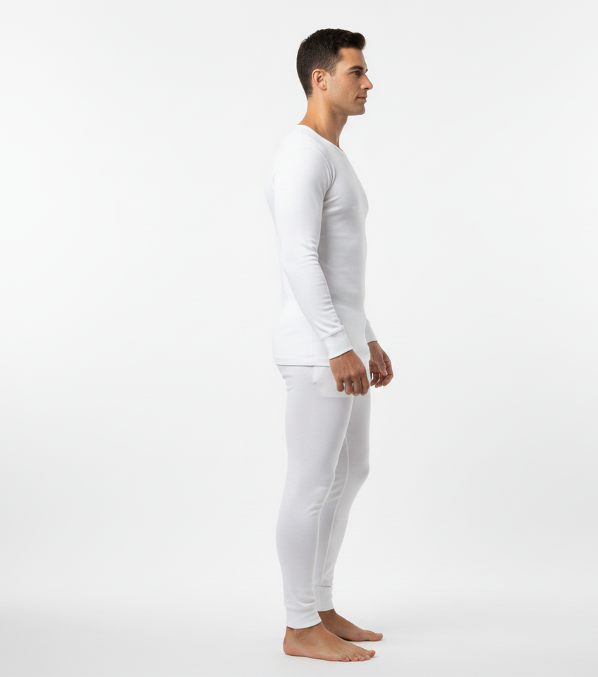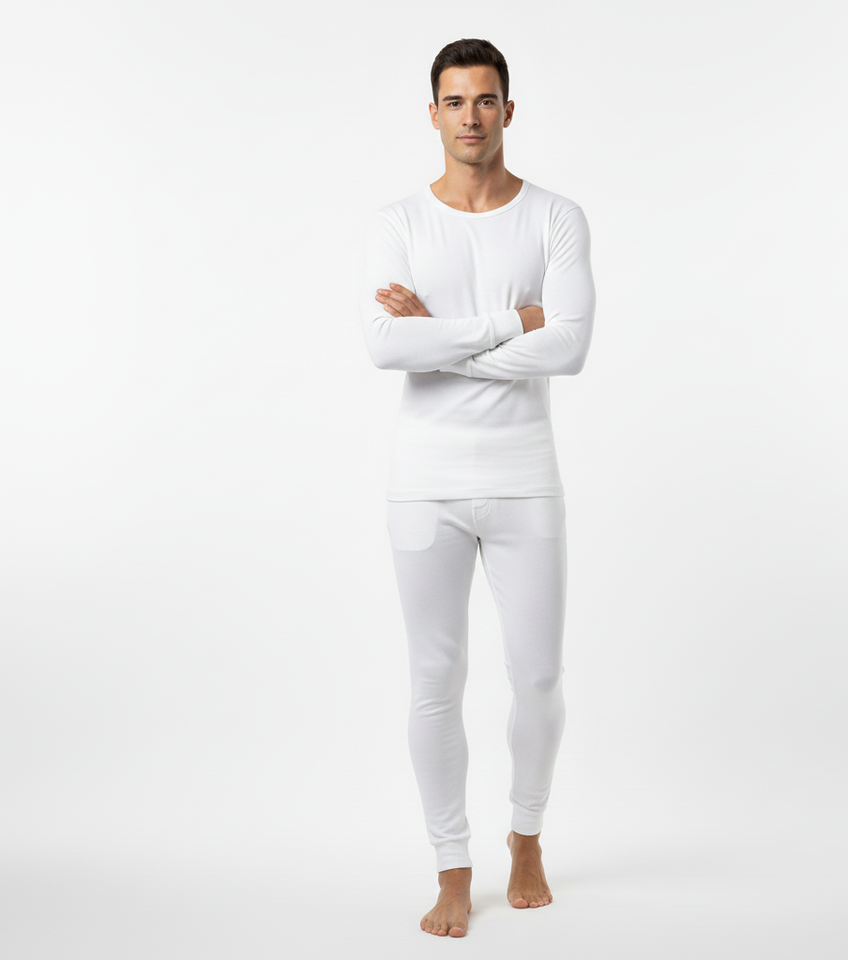 WinterGuard Premium White Men Thermal Suit Full Sleeve Warm Set Soft Heat Retention Comfortable Fit