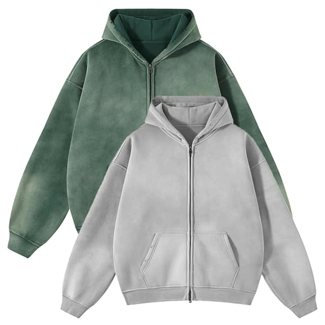 Winters Embroidered Acid Wash Cotton Fleece Zip-Up Hoodie for Men 100% Cotton Oversized Eco-Friendly Washed Hoodies