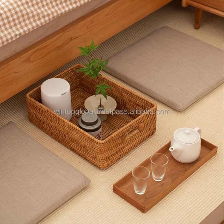 Wintop Multiple Sizes Rattan Woven Eco-Friendly Durable Storage Basket Lid 100% Handmade China Multifunction for Home Hotel Use