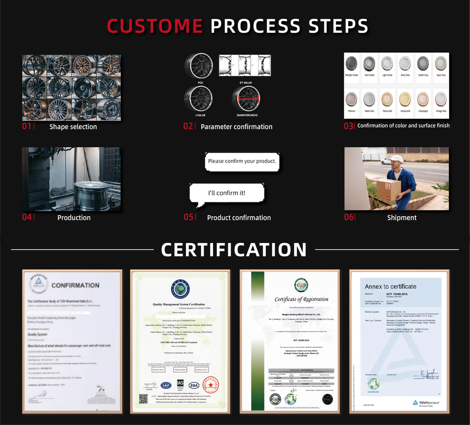 Certification:TUV/JWL/VIA/ TSE/ SFI /TS16949/DOT