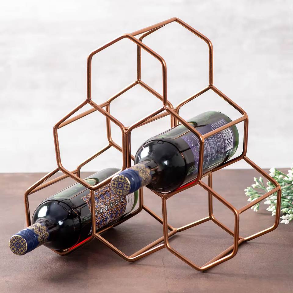 Wire Design Metal Wine Rack Counter Top Storage Holder Copper Plated Wine Bottle Holder Kitchen & Tabletop Wine Shelf