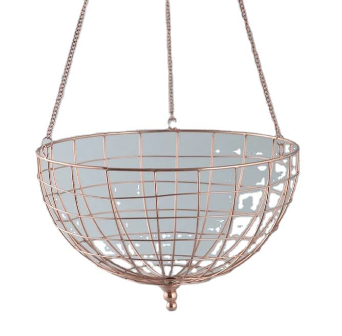 Wire Design Round Plant Pot Hanging Minimal Design Rose Gold Modern Indoor Plant Decoration for Balcony & Garden