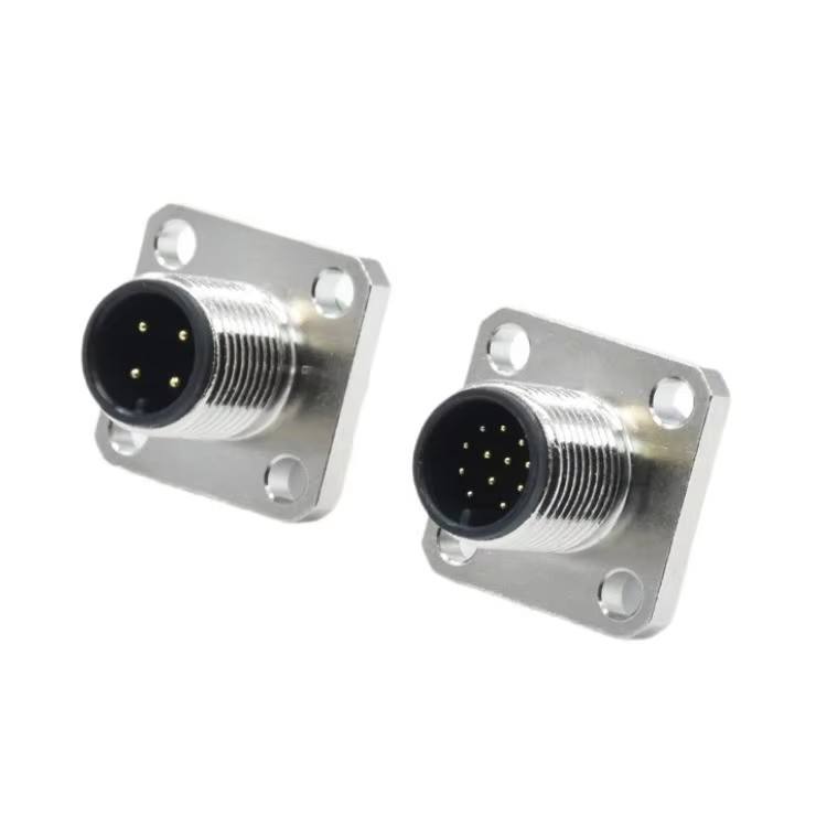 Wire PCB Panel Mount Connector M12 4 Pin 12 Pin A-coded Waterproof Square Flange Solder Male Socket Cable Connector
