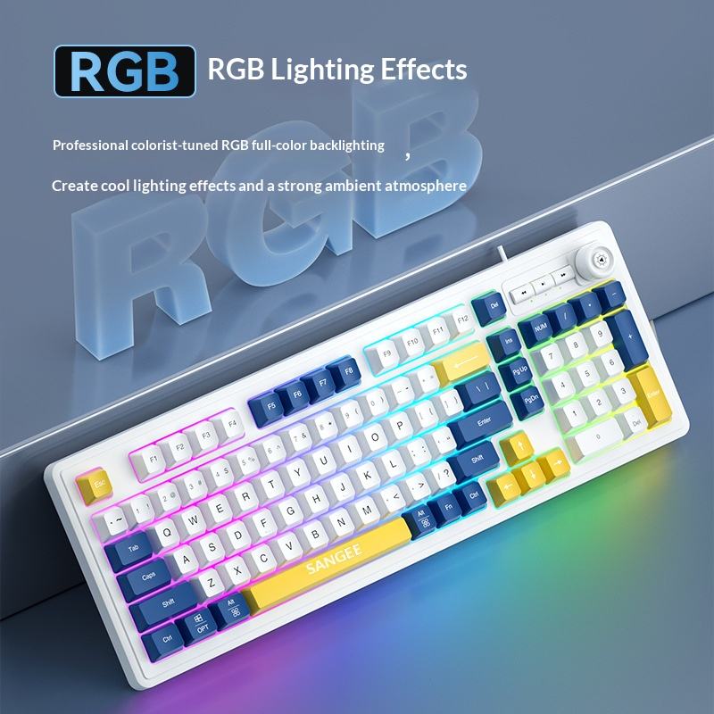 Wired Gaming Keyboard Three Color Splicing Light Up Mechanical Feeling Keyboard Desktop Computer Accessories