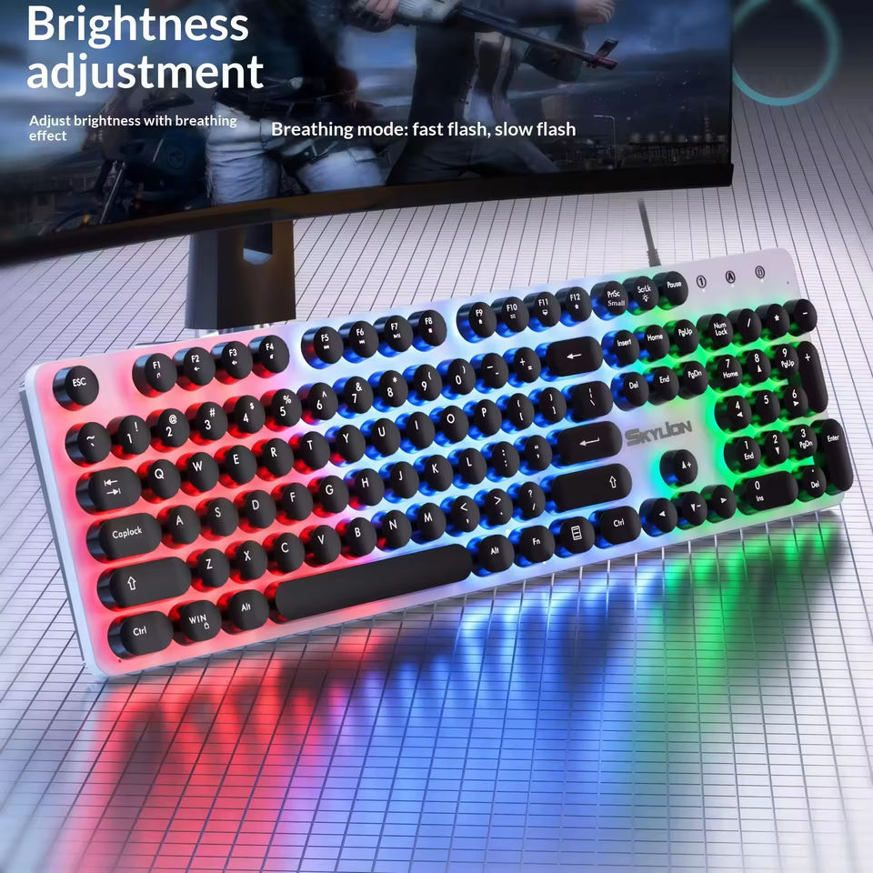 Wired Punk Keyboard Mouse Set with RGB Backlit Mechanical Feeling for Laptop Desktop Home Office Business