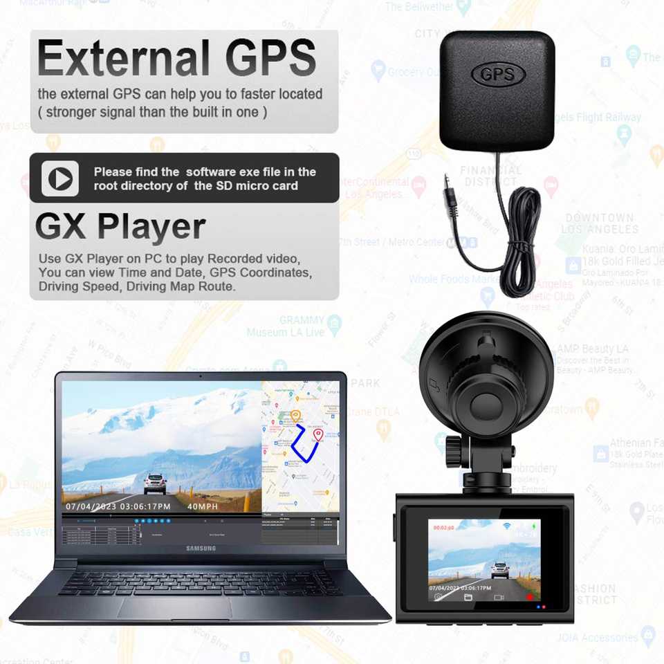 Night Vision, WDR, Full Color, G-Sensor, park MODE, Loop recording, Build-in WiFi, Motion Detection, Build-in GPS, Emergency Accident Lock, Build-in BatteryFunction