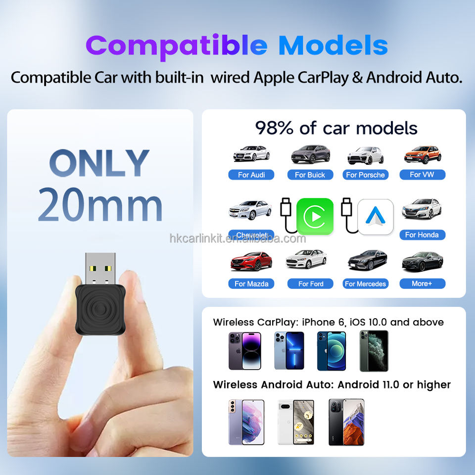 Compatible car model:All car with OEM factory wired carplay/wired Android Auto