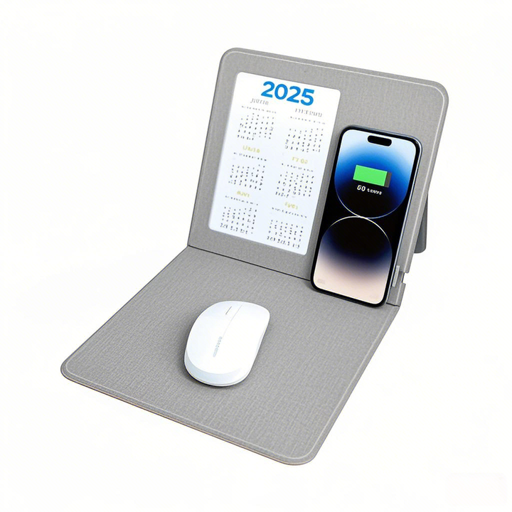 Wireless Charging Pu Leather Calendar Mousepad with Bracket Mouse Pad Desk Calendar Photo Frame