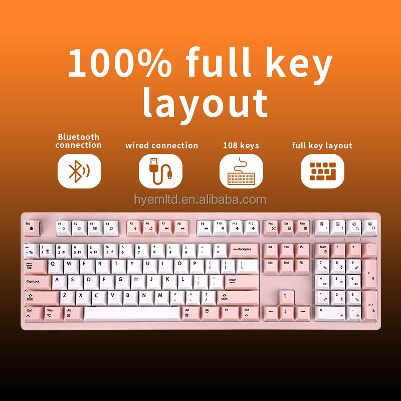 Wireless Cherry Axis USB Type-C 108-Key Triple-Mode Silent Mechanical Gaming Full Size Keyboard Anti-Ghosting No Backlight New