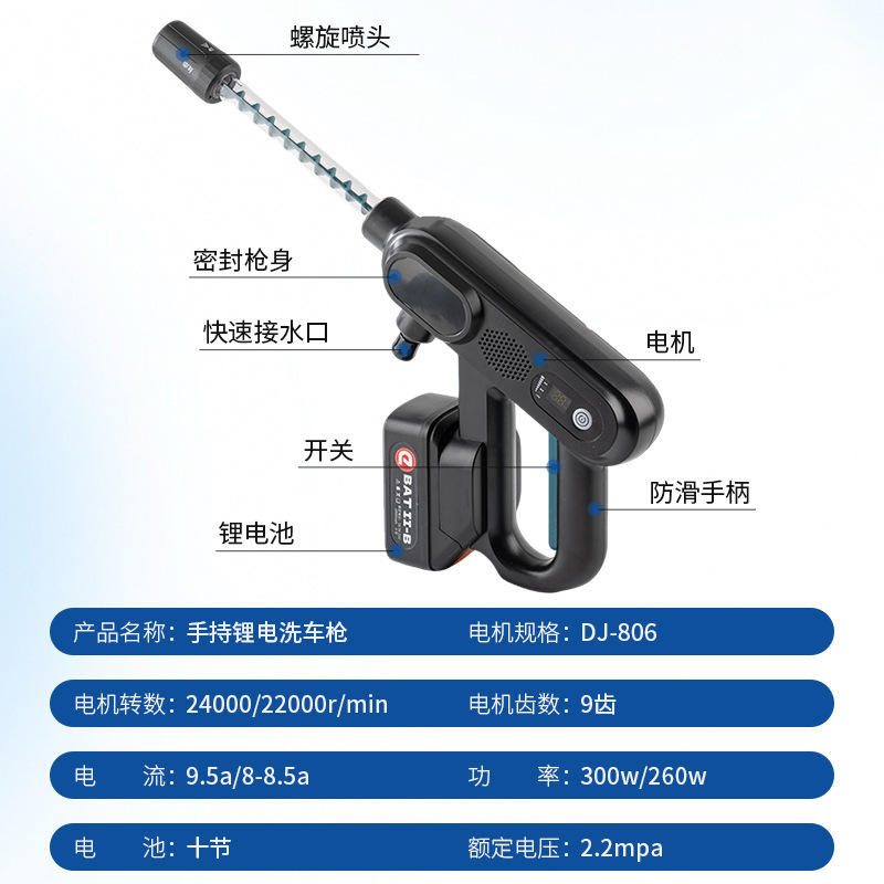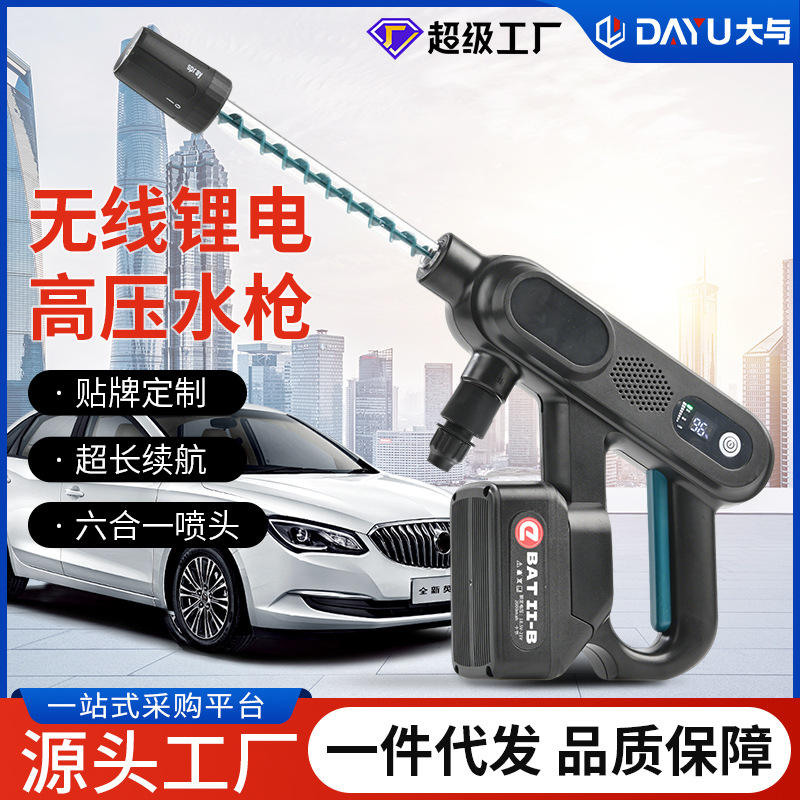 Wireless High Pressure Car Wash Gun Lithium Battery 40bar Water Output 2.6-4Lmin Portable For Car Cleaning And Gardening