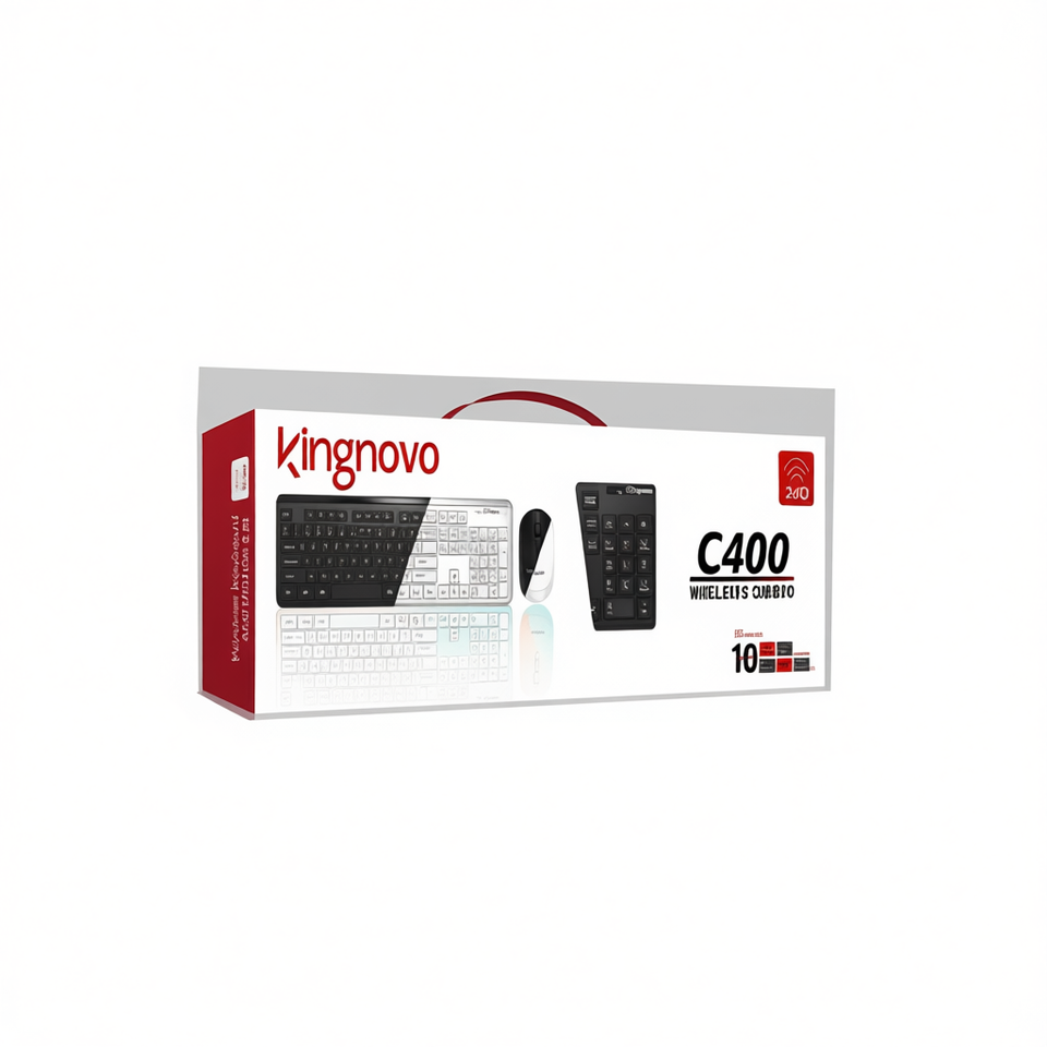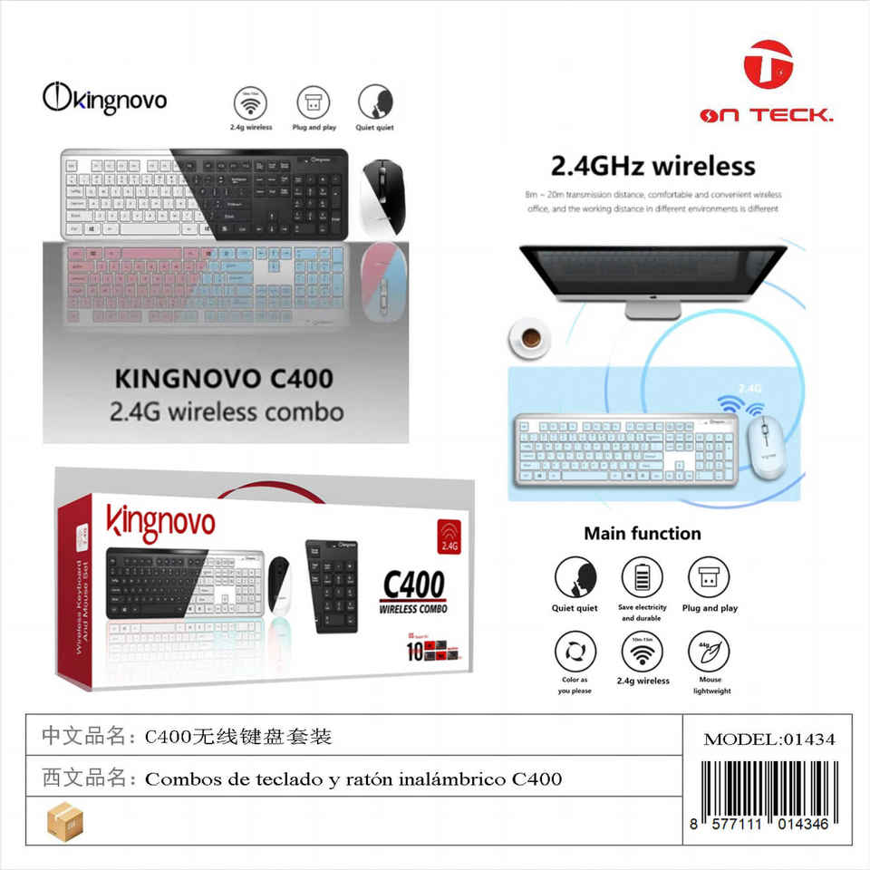 Kingnovo C400 Wireless Keyboard Mouse Set Silent RGB Backlit 104 Keys USB Receiver Ergonomic For Home Office