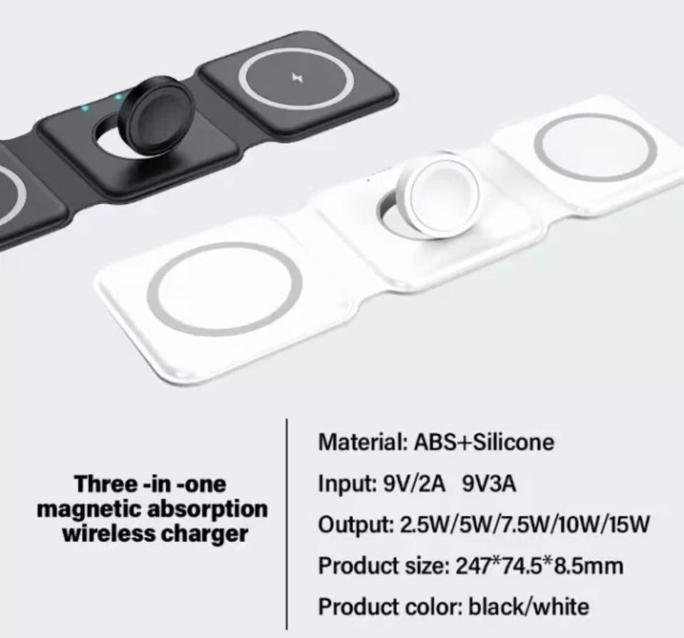 Wireless Magnetic Travel Power Supply Adapter for 16/15/14/13/12/11 15W QC3.0 Fast Charging Station with Foldable Design
