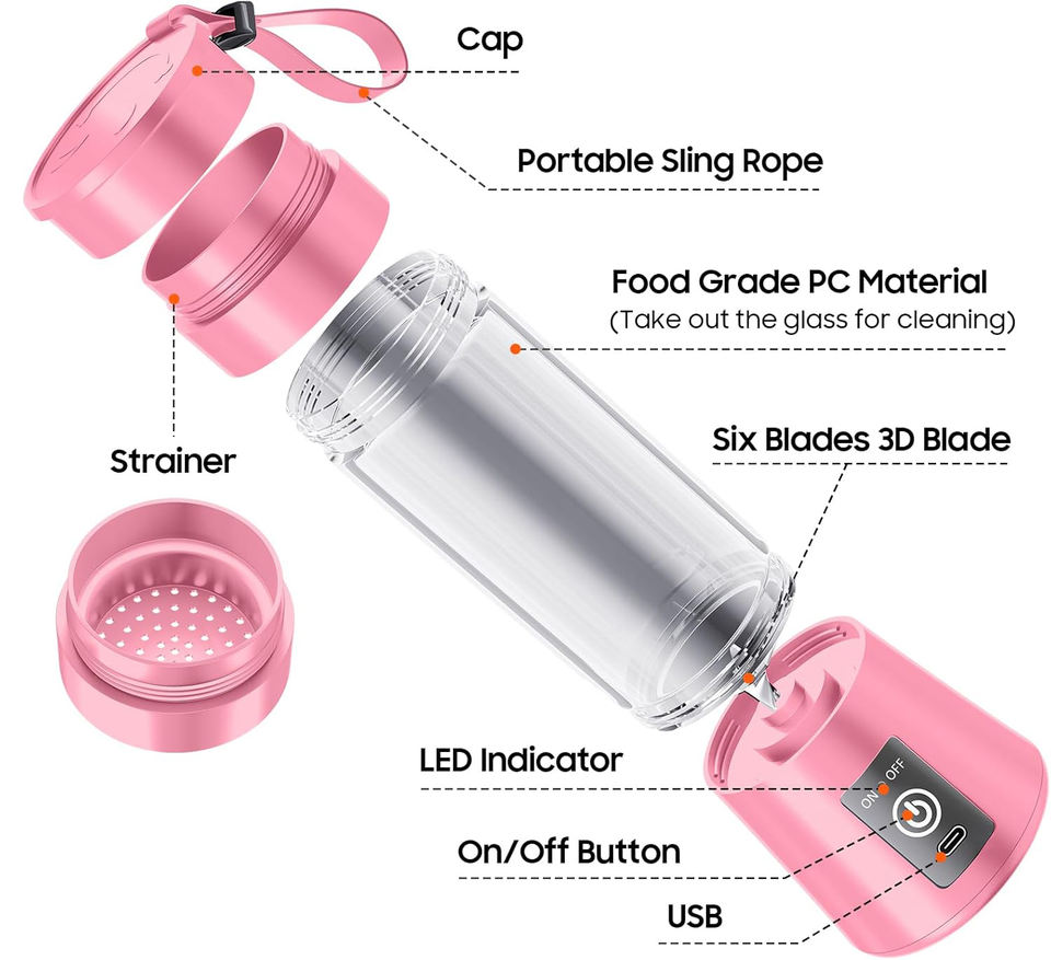 Wireless Usb Rechargeable Fruit Orange Smoothies Juice Extractor Machine Mini Handheld Portable Electric Blender and Juicer