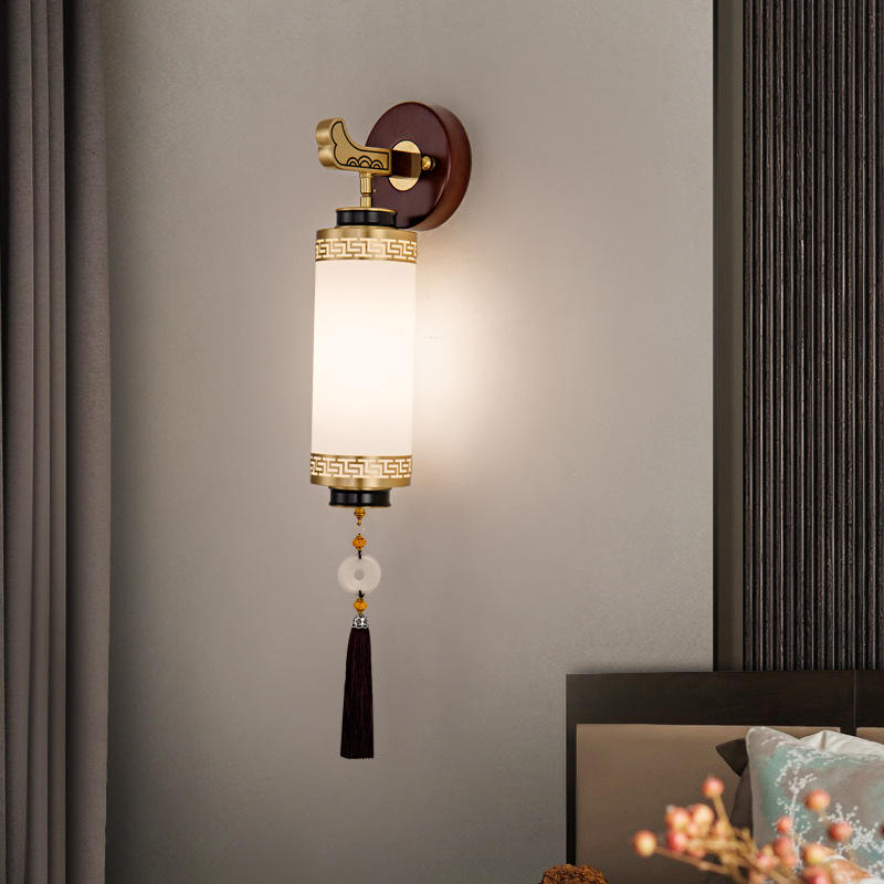 Minimalist LED Wall Lamp with Armed Crystal Cylinder Shade Wall Sconce