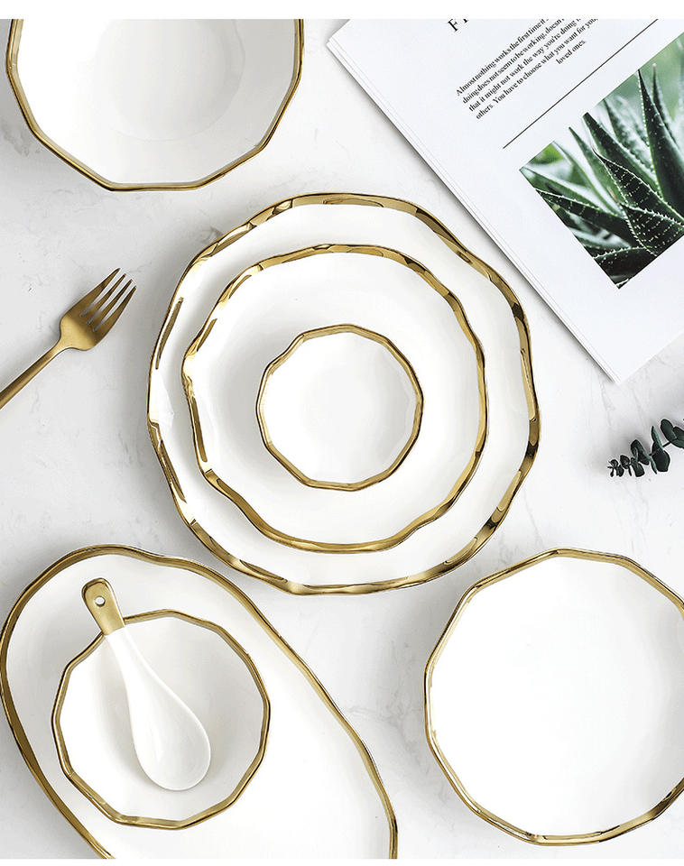 With Gold Trim Nordic Phnom Penh Rice Bowl Plate Dish Spoon Chopsticks Household Ceramic Tableware Set