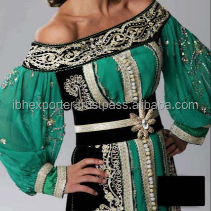Without Collar Style Kaftan With Embroidery and Lace Work Wth Puff Sleeves