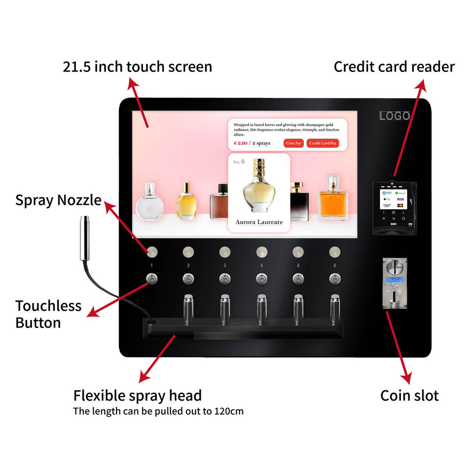 WoWHouse Dual Spray Mode Wall-Mounted Perfume Vending Machine with Manual and Automatic Spray Options, and self-serve experience