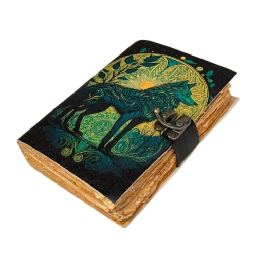 Wolf Grimoire Leather Journal Book of Shadows with Lock