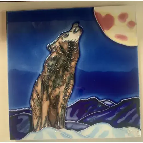 Wolf Howling Under Full Moon 8x8 Decorative Wall Art Ceramic Tile New Backsplash Gift Wall Accents