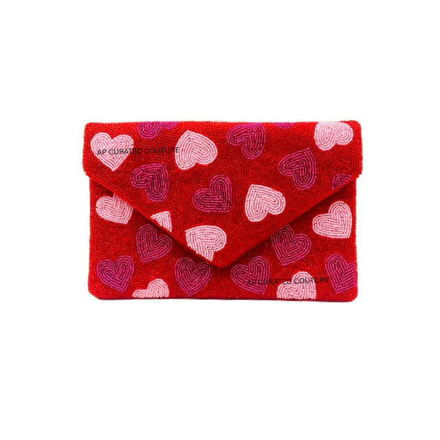 Woman Beaded Strawberry Pouch Handmade Cotton Wallet Beaded Bag Valentines Day Themed Zipper Purse Customizable beaded Clutches