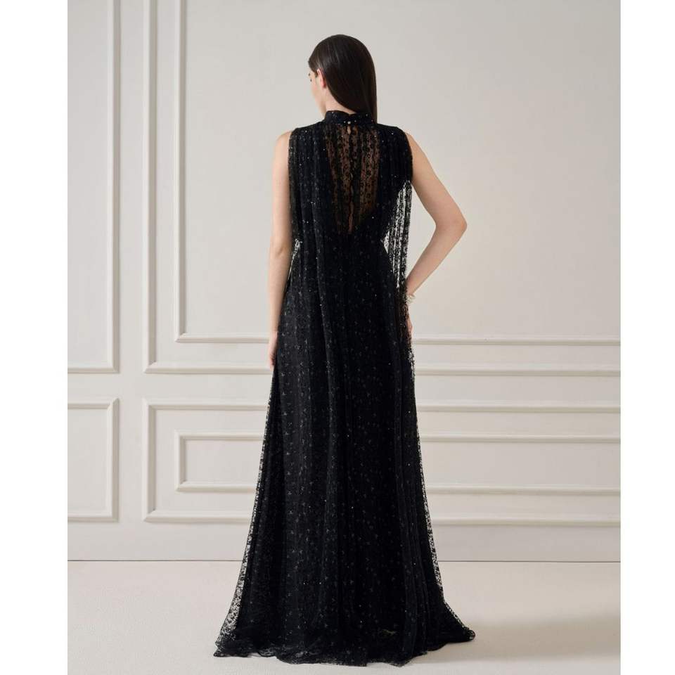 Woman Clothes Fashion Elegant Women's Dress ZUKA LACE EFFECT Scarf LONG DRESS Attached Long Back Panel Women's Fashion Clothing