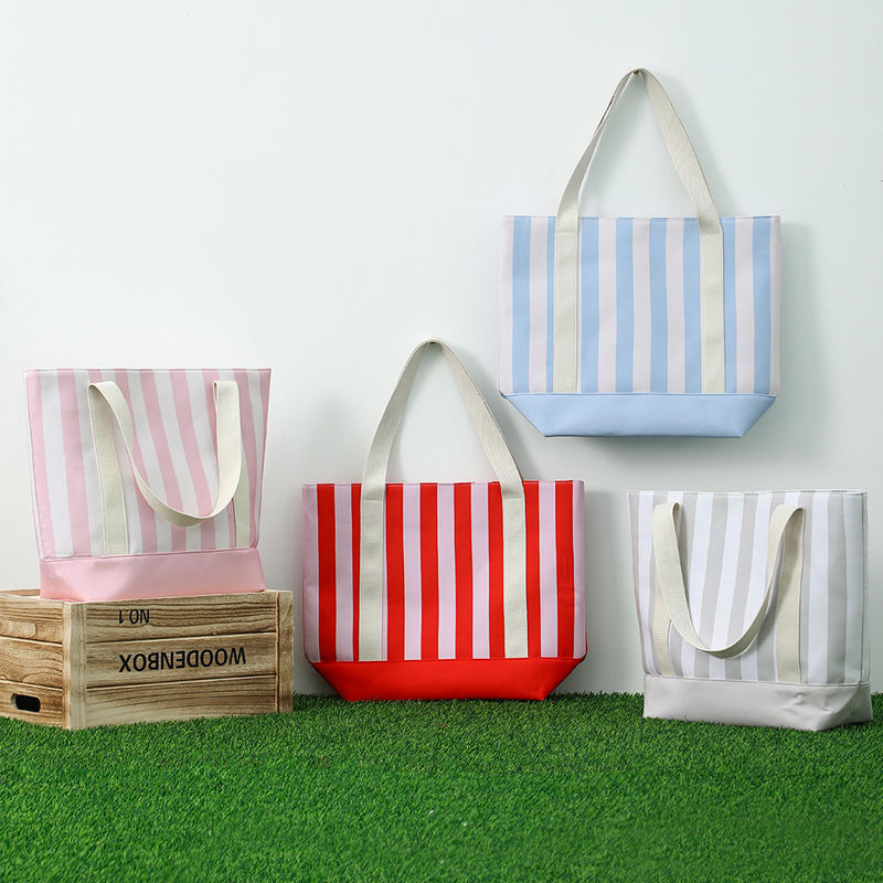 Woman Foldable Utility Tote Bag Personalized Pin Weekender Bag Canvas Striped Beach Tote Bag