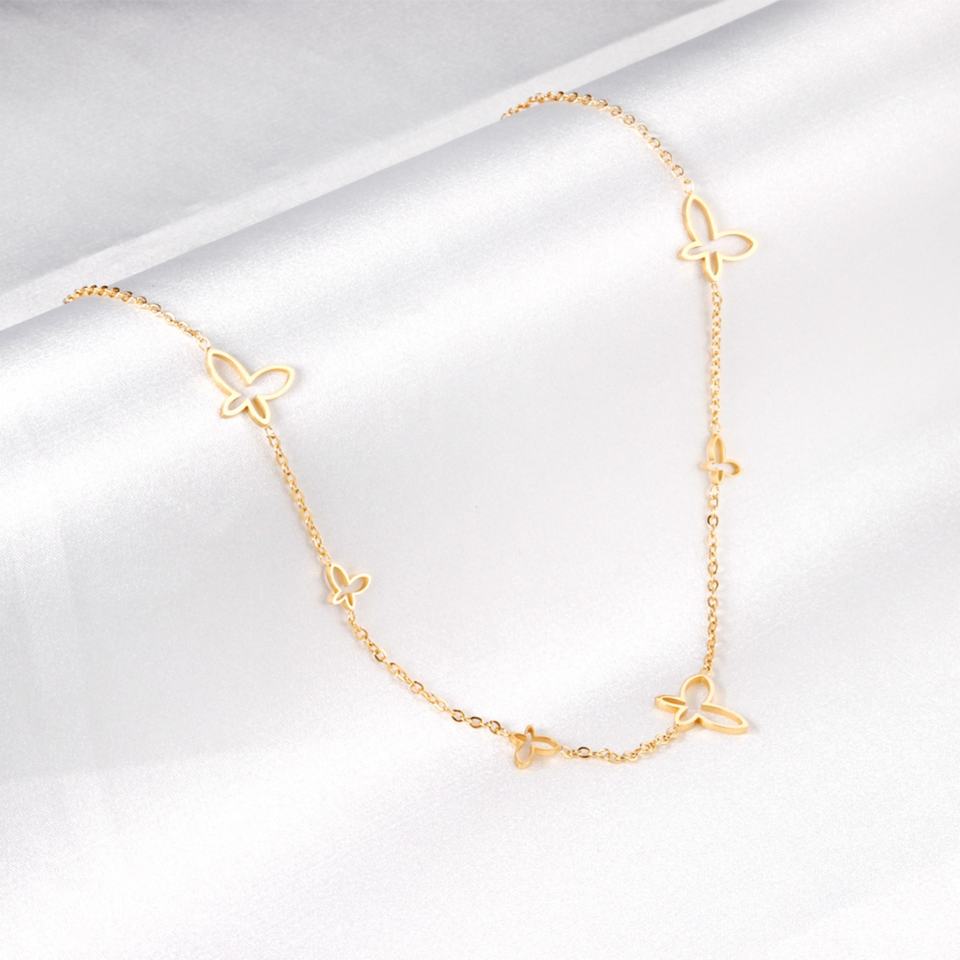 Woman Trendy Charm Hollow Out Butterfly Stainless Steel 18 k Gold Plated Necklaces Jewelry