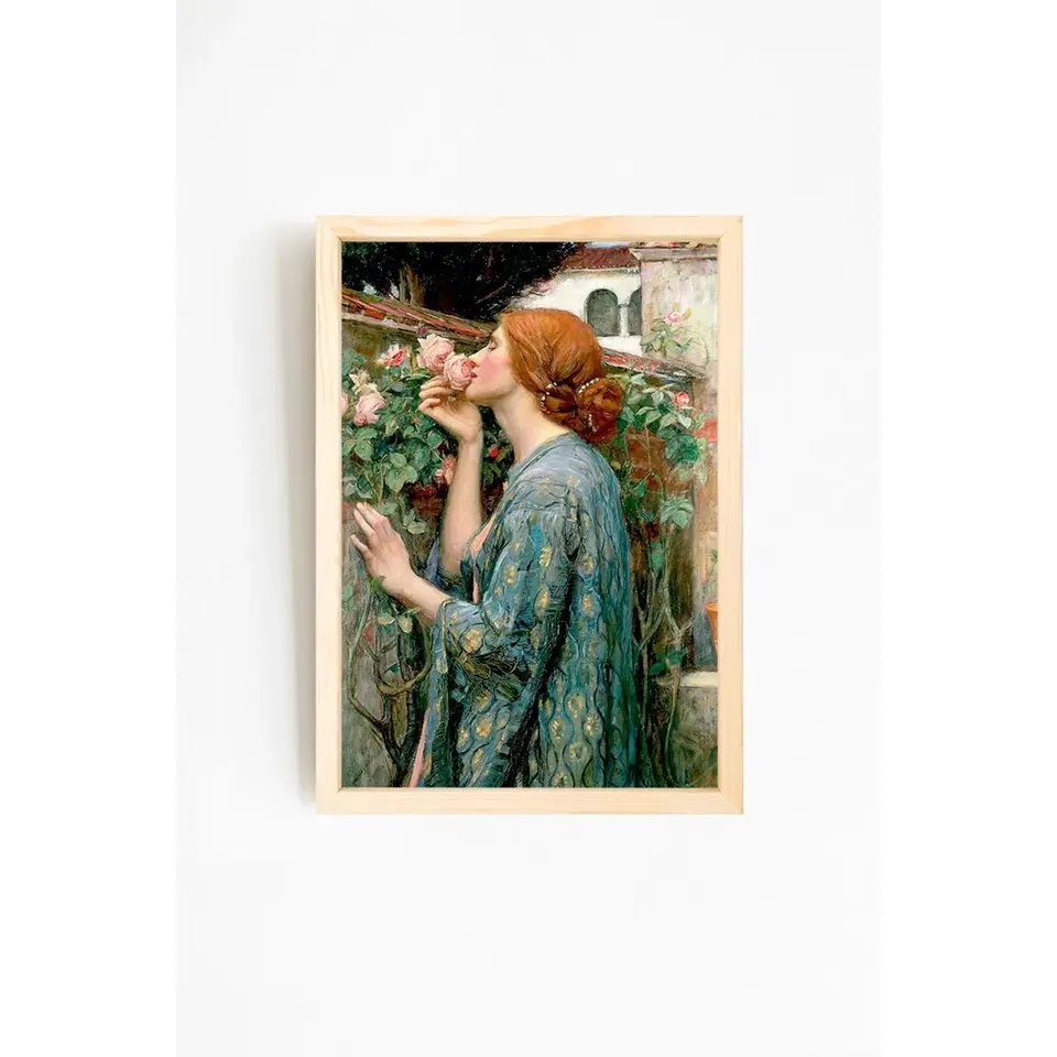 Slug:woman-and-flower-natural-wood-framed-painting-02-3-1
