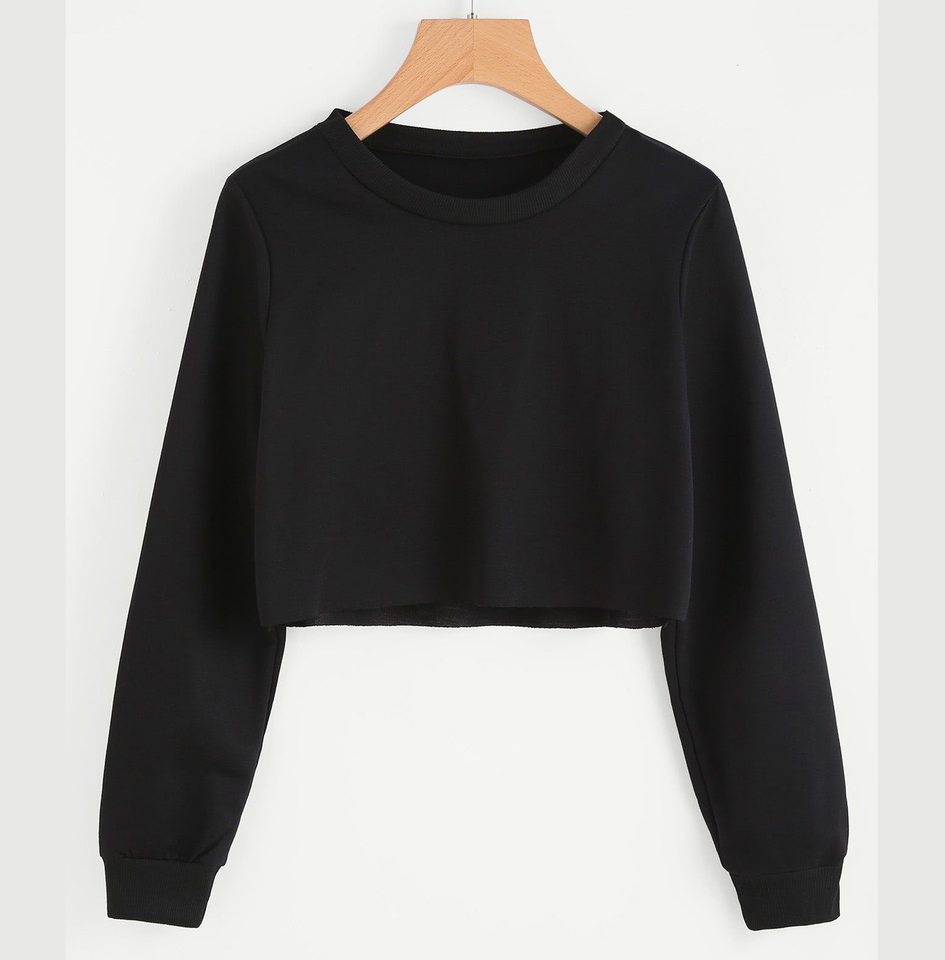 Women 100% Cotton Plain Sweaters Long Sleeve Oversized Crop Top Sweatshirt Cropped Sweatshirts for Women