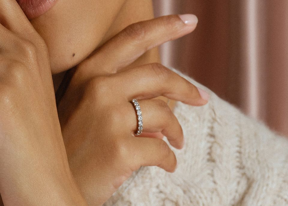 Women 14K Yellow Gold Vermeil Full Eternity Band 2Ct Round Cut Lab Grown Diamond Anniversary Ring Wedding Band Wholesale Jewelry