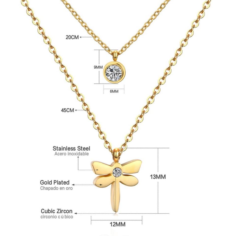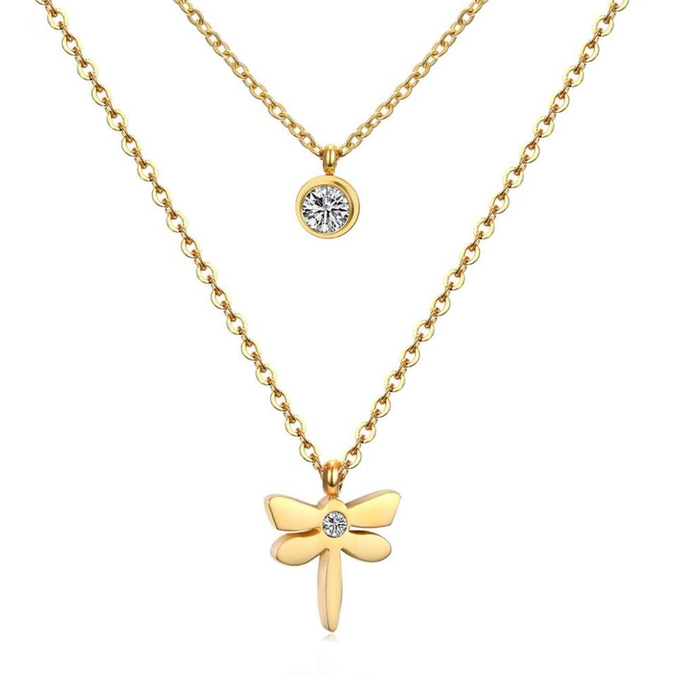 Women 14k Gold Plated Double Chain Dragonfly Jewelry Steel Pendant Necklace Jewelry for Women