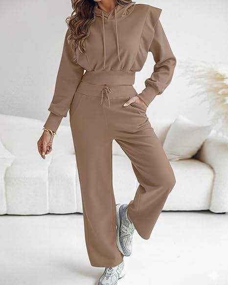 Women 2 Piece Winter One Set Cropped Long Sleeve Hoodie Wide Leg Sweatpants Tracksuit Custom Logo