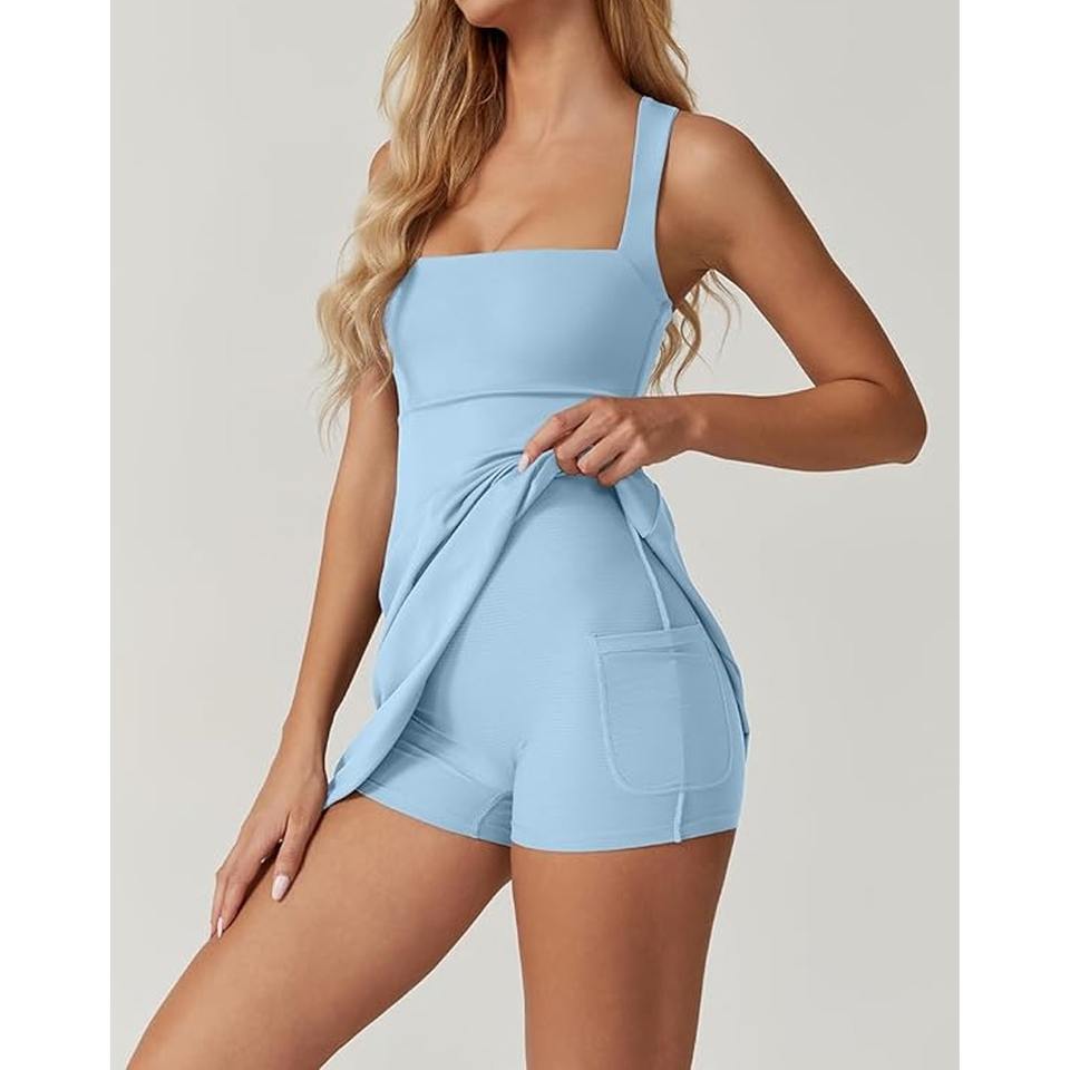 Women 2025 Sweet and Cute Sleeveless Racerback Flared Swing A-Line Waist Hollow Out Summer Short Dress