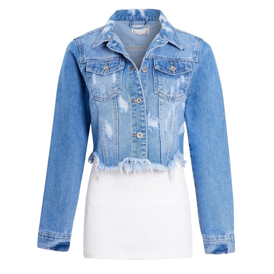 Women's Cropped Acid Wash Denim Jacket with Button Detail Casual Winter Style Stylish Ripped Design for Daily Wear