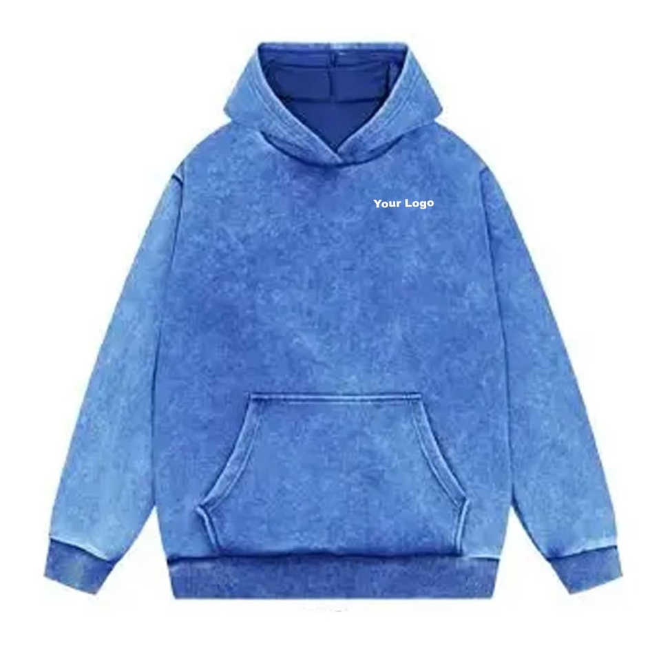 Women Acid Wash Hoodies Blue Color 280 GSM Custom Logo Embroidered Breathable Casual Wear Women French Terry Acid Wash Hoodies
