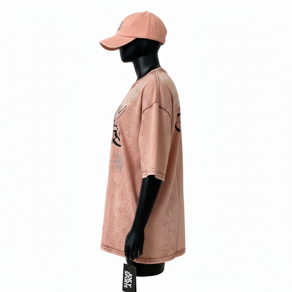 Women Acid Wash Shirt Premium 200 GSM Cotton Fabric Oversized Fit Soft Feel Rhinestone Heat Press Custom Logo Breathable
