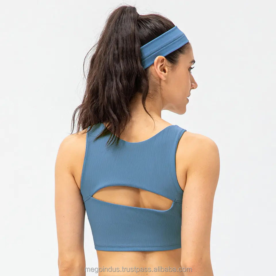 Women Athletic Gym Running Fitness Workout Seamless Sports Bra Hollow Out Back Front Shockproof Padded Yoga Workout Bra