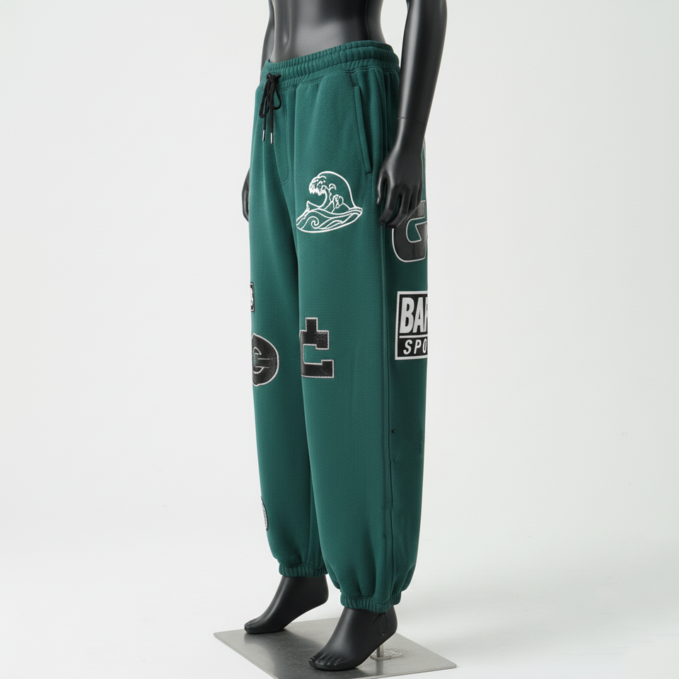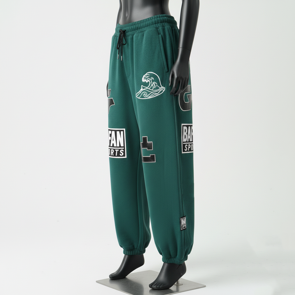 Women Baggy Fleece Pant Cotton Polyester Heavyweight Soft Touch Green Panel Jogger Custom Screen Print Logo Baggy Pants For Sale