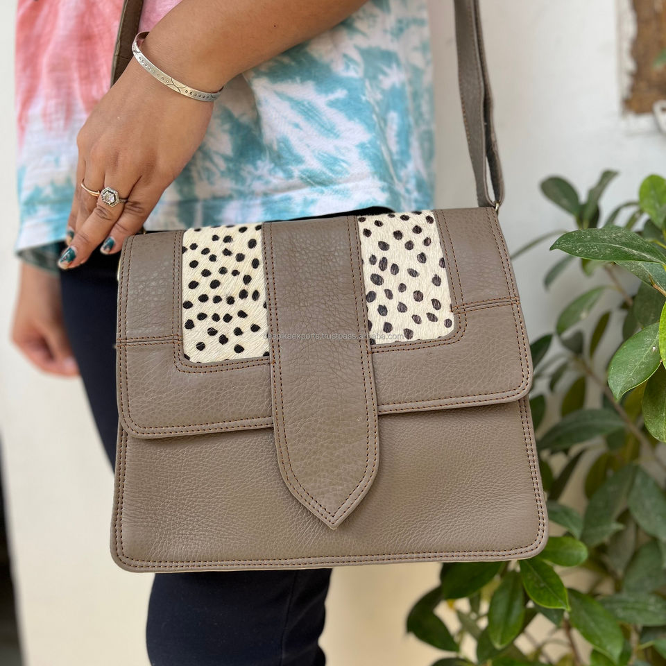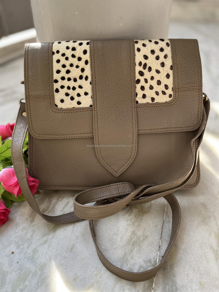 Women Bags Handmade Recycled Animal Fur Leather Handbag Colorful Unique Pattern Wholesale Shoulder Sling Bag