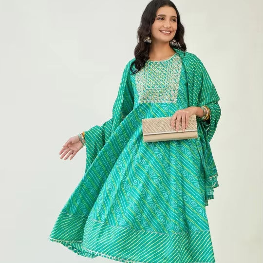 Women Bandhani Embroidered Empire Pure Cotton Kurta with Trousers & With Dupatta