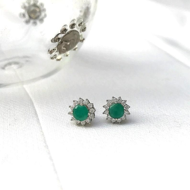 Women's Best Quality Wedding Gift Gold Plated 925 Sterling Silver Emerald Gemstone Stud Earrings