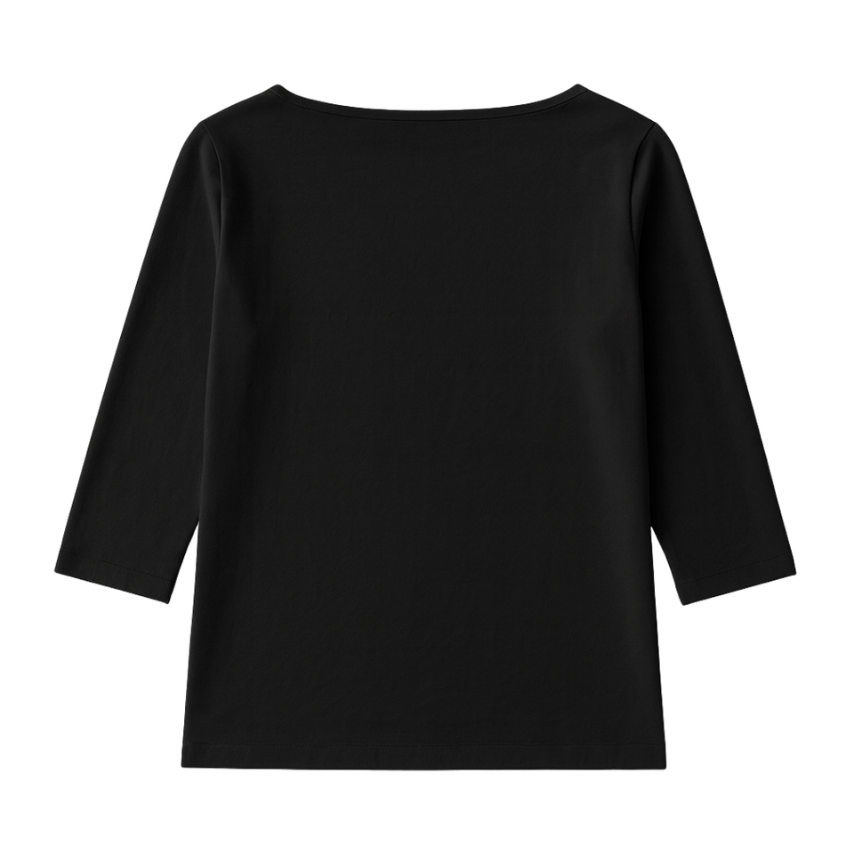 Women Black 3/4 Sleeve Boat Neck T Shirt 100% Luxury Organic Cotton Pre Shrunk GOTS Certified Premium Soft Classic Fit Tee