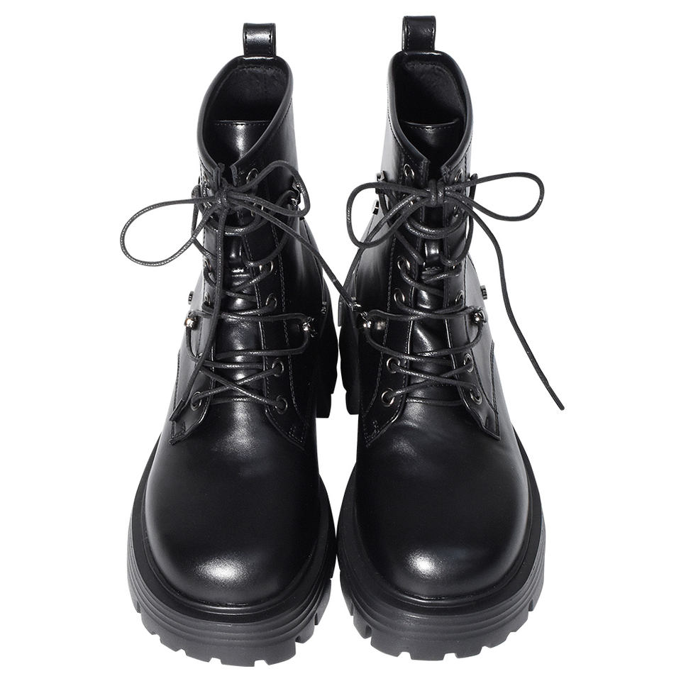 Women Black Lace-Up Platform Ankle Boots 6.5cm Chunky Heel Water-Repellent Stretch Faux Leather Wholesale