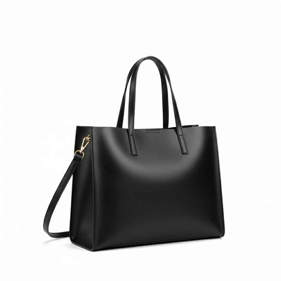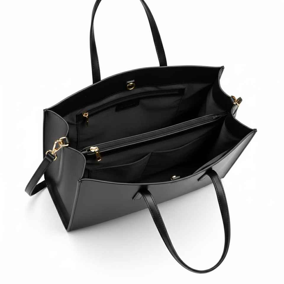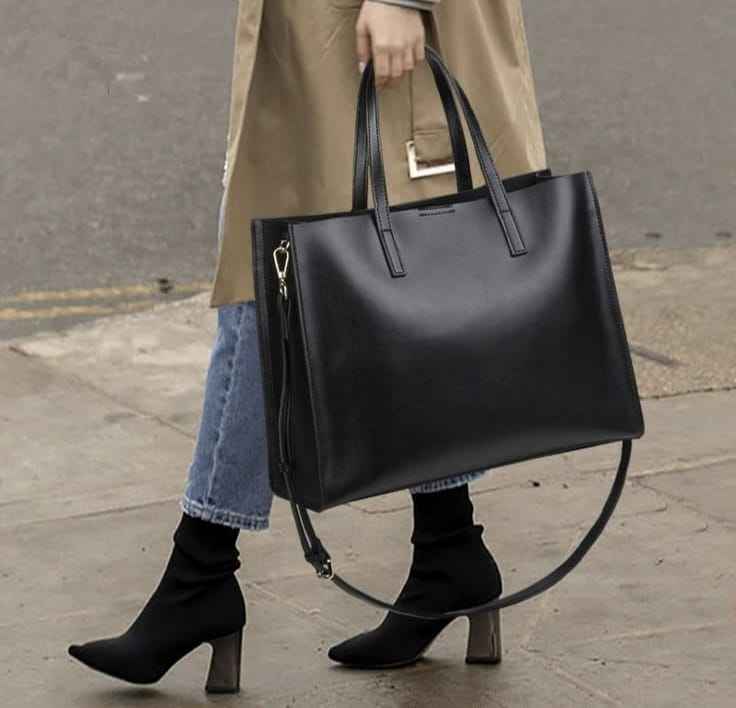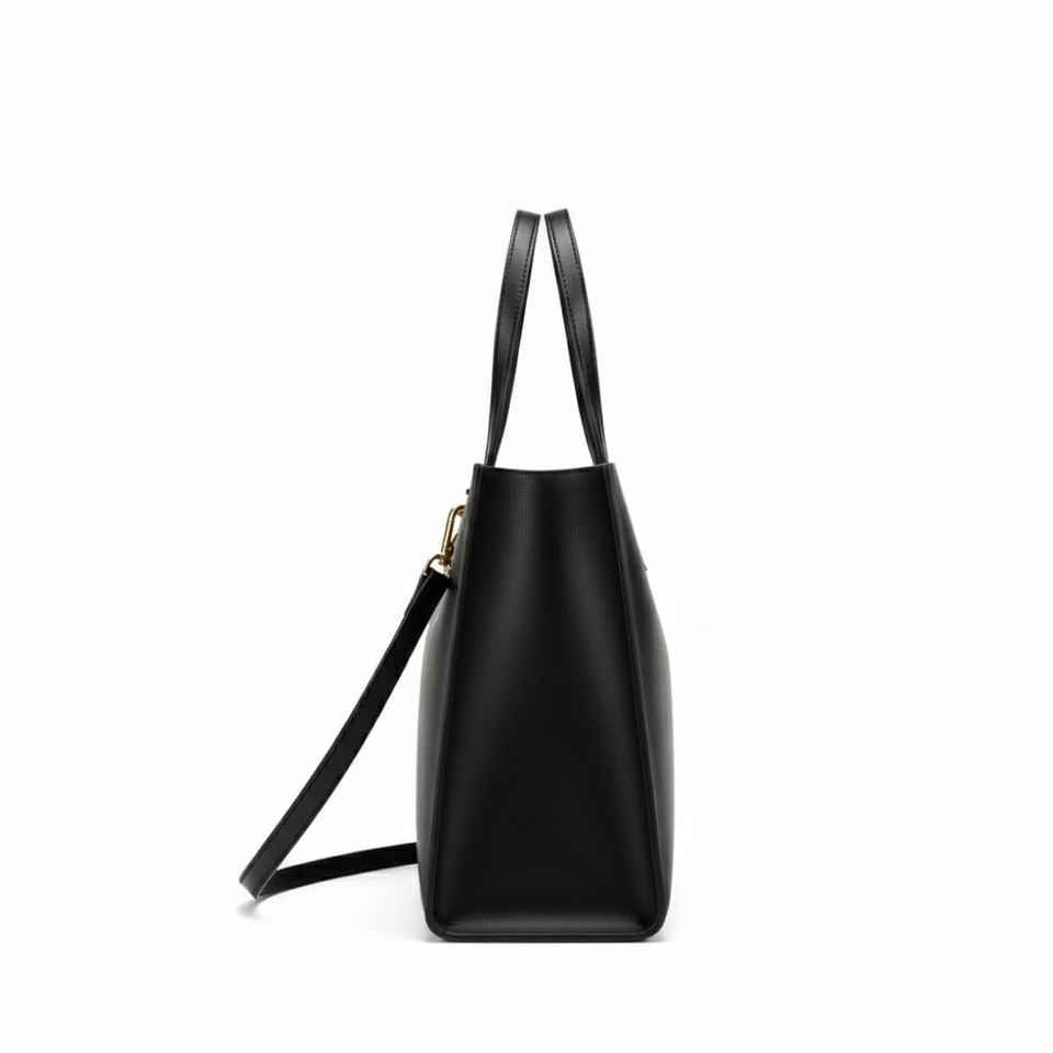 Women Black Genuine Leather Fashion Candy Two Zip Tote Bag Laptop Work Shoulder Handbag Crossbody Satchel Office Teacher