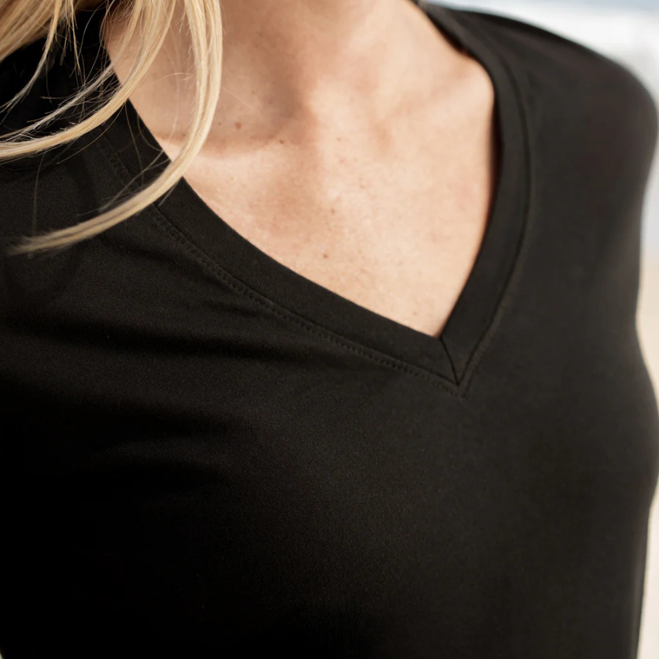 Women Black Long Sleeve V Neck T Shirt 100% Luxury Organic Cotton Pre Shrunk GOTS Certified Premium Soft Classic Fit Tee